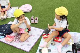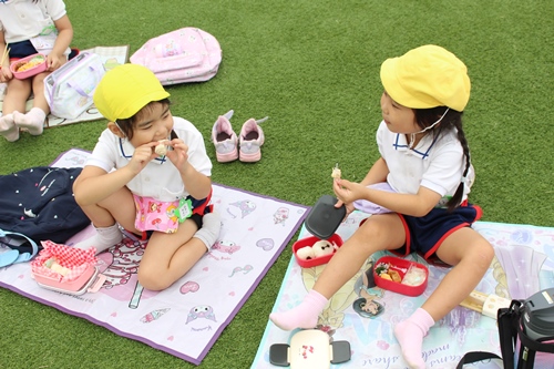 空の下でお友だちと食べるお弁当は本当においしいですね!