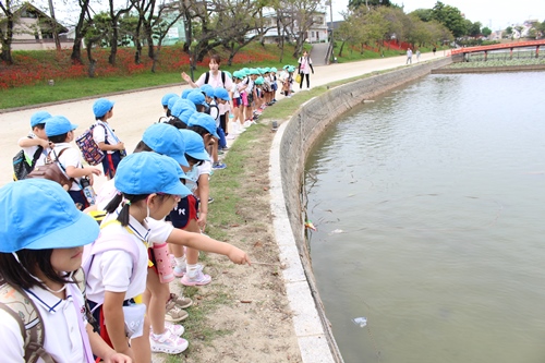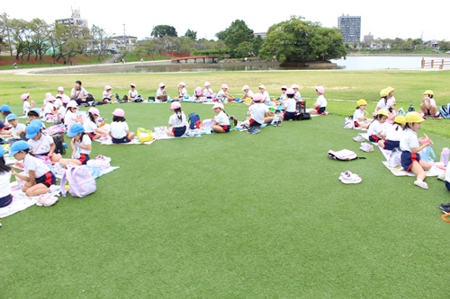 今日は年長組のみんなで「天王川公園」へ遠足に出かけてきました。