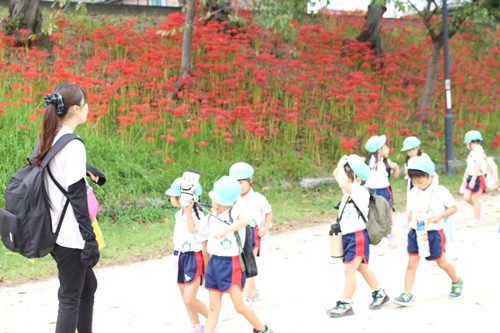 1日外でお弁当を食べたり体を動かしたりしましたが、幼稚園に帰ってからも鬼ごっこで全力で走り回っていました。