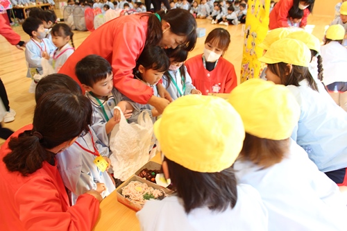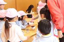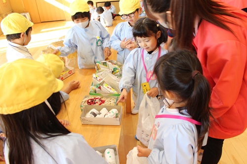 交代でお店屋さん側で食べ物を売る人にもなったりして、おみせやさんごっこを存分に楽しみました。