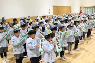 それぞれカスタネットや鈴、トライアングルにメロディオンなど、様々な楽器を使って演奏したり、クリスマスソングを歌ったりしました。