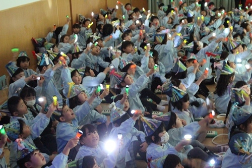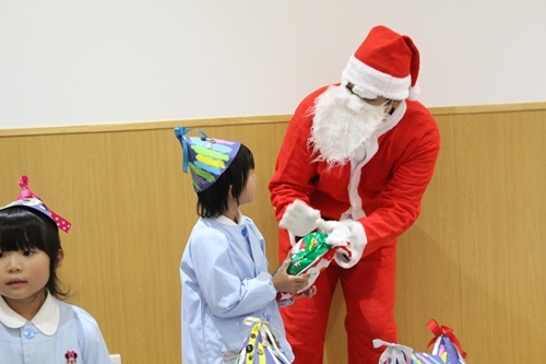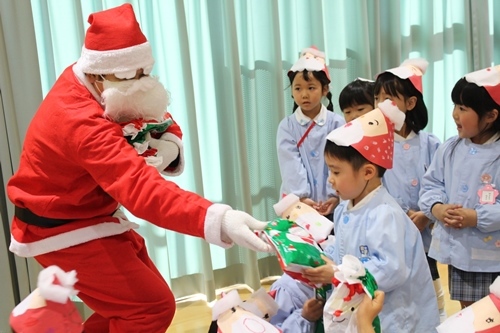いい子にしていた子どもたちにたくさんのプレゼントを届けに来てくださったサンタさんを見て、みんなの目がイルミネーションに負けないぐらいキラキラしてました。