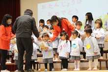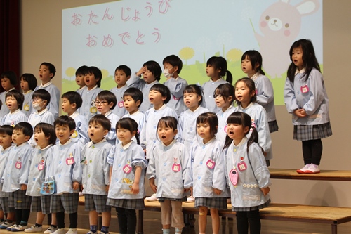 今月もたくさんのお友だちが舞台の上に上がって、みんなにお祝いしてもらいました。