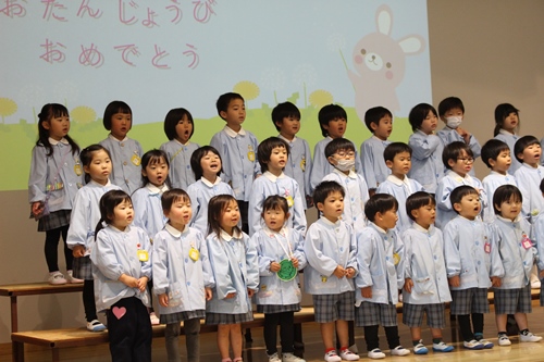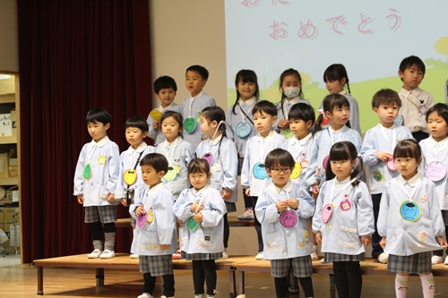 今月は、ゆり組、うめ組のお友だちが歌の発表をしてくれました。